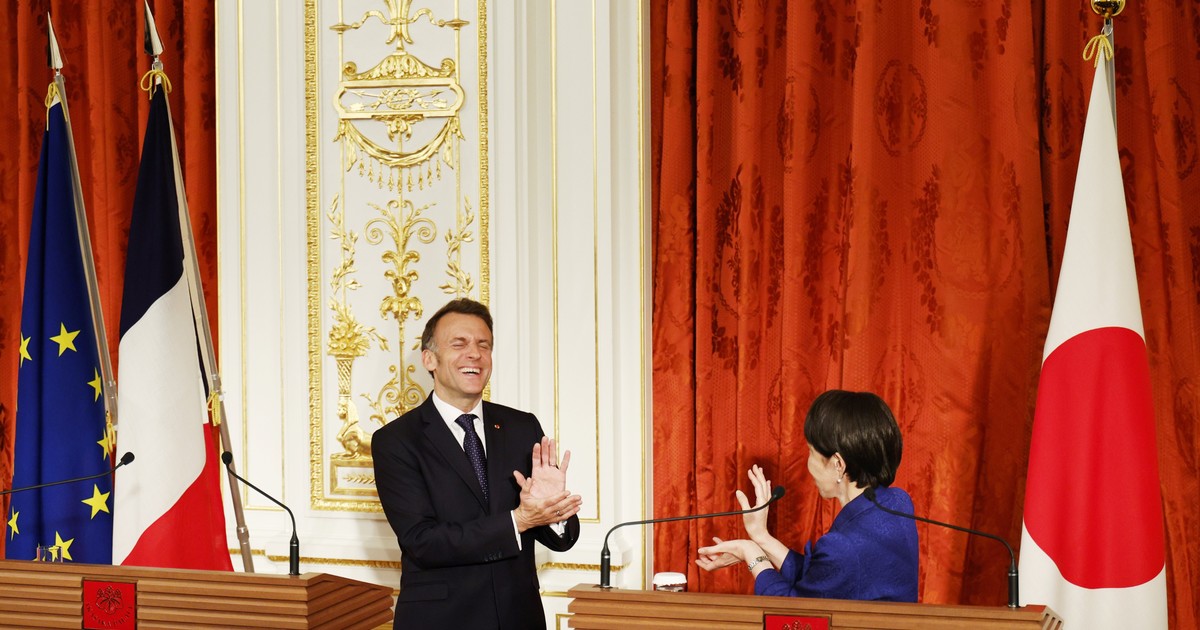 - El presidente francés compartió un video del momento junto a la palabra “¡Fusión!” escrita en japonés.
