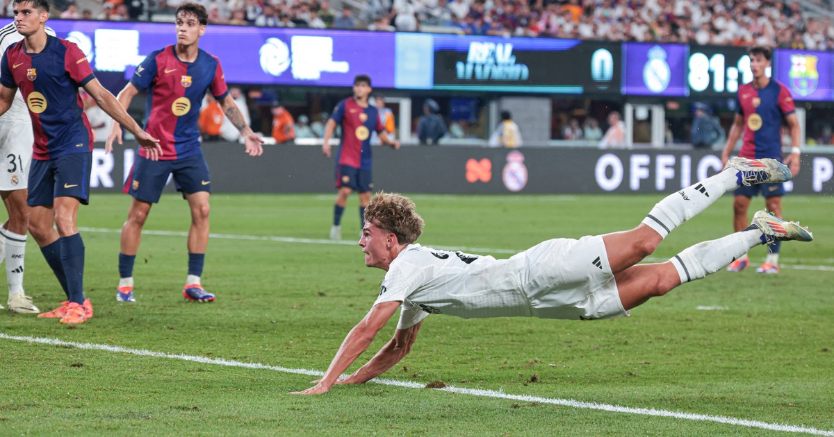 En un amistoso de pretemporada, el equipo catalán se impuso 2-1.El partido se interrumpió una hora por una tormenta electríca.Para el Merengue marcó Nico Paz, que ingresó sobre el final.