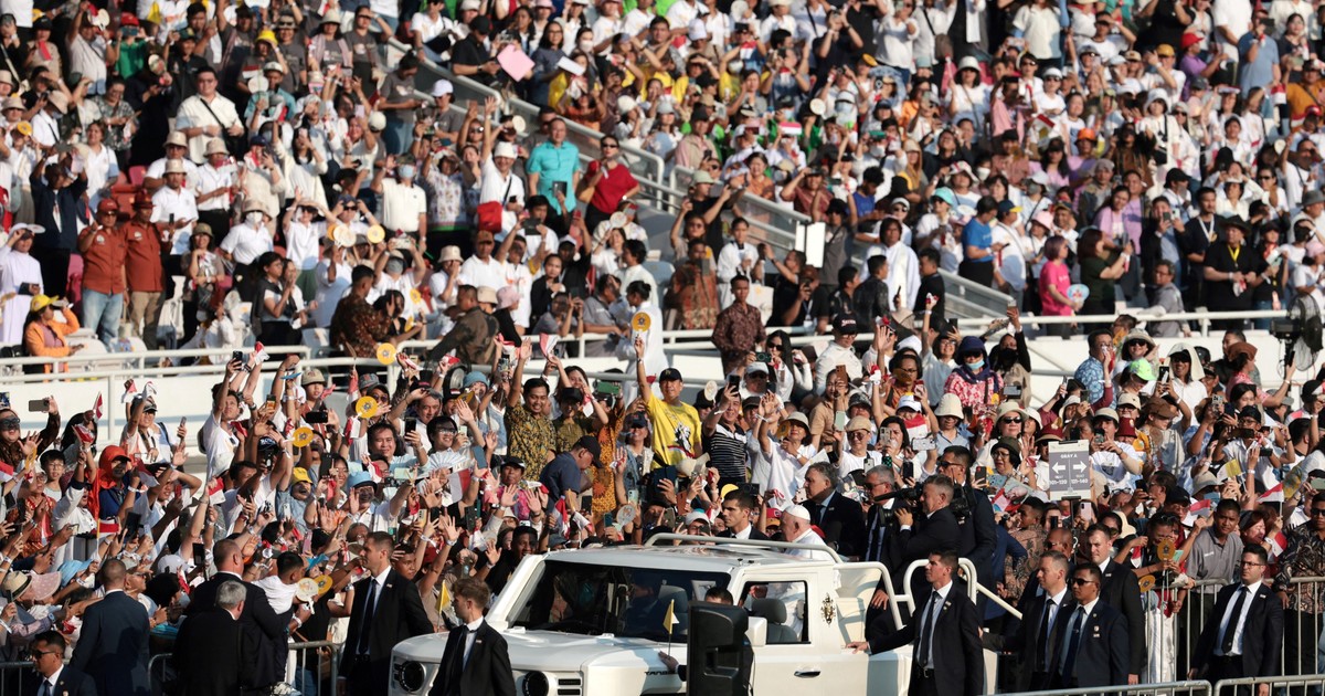 Firmó un declaración común con el gran imán musulmán Nasanddin Umar en la que expresaron su preocupación por la “deshumanización” causada por la generalización de los conflictos.Luego oficio misa ante un repleto estadio con 80 mil personas, que lo vivaron.