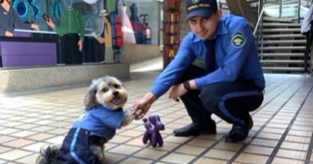 • Le dicen “el celadog” y va todos los días a hacer sus rondas en un centro comercial.