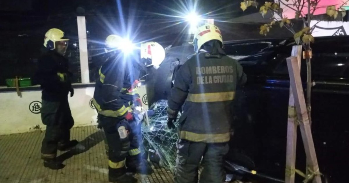 • Un auto terminó incrustado en el frente del Club Obras Sanitarias.