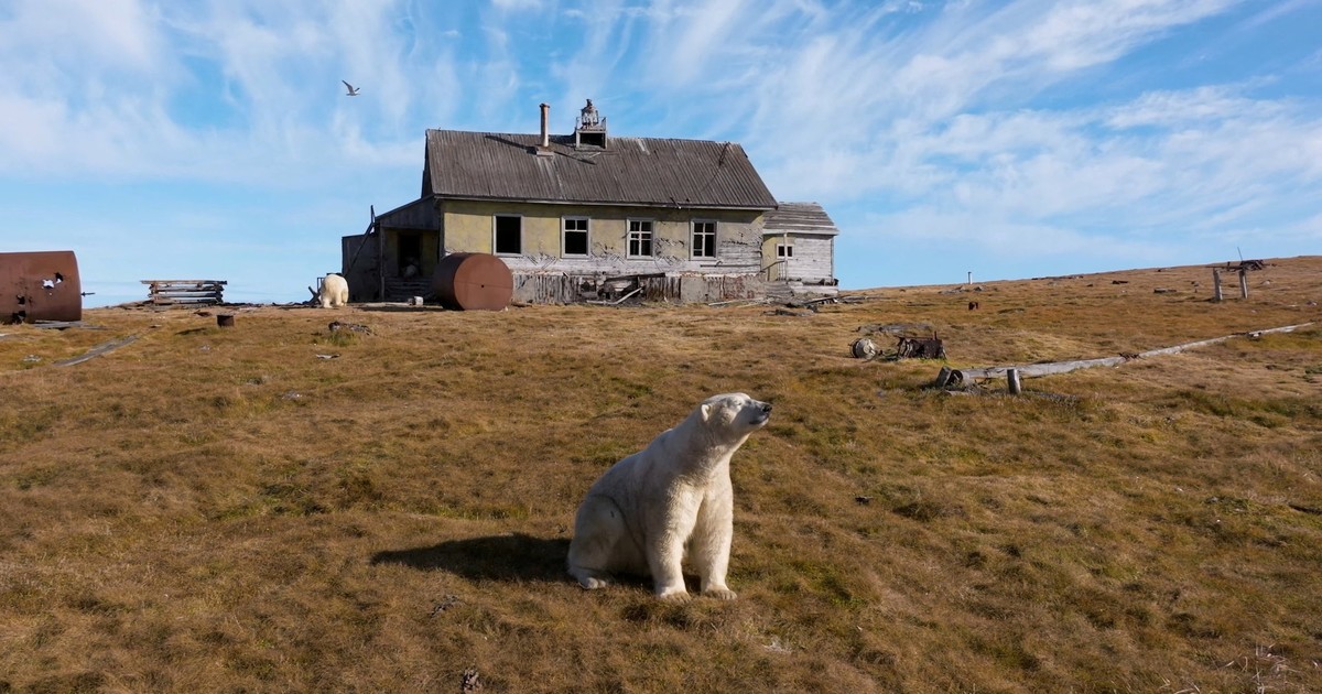 - Un bloguero ruso capturó con su dron a estos gigantes del Ártico instalados cómodamente en edificios abandonados de la isla Kolyuchin.