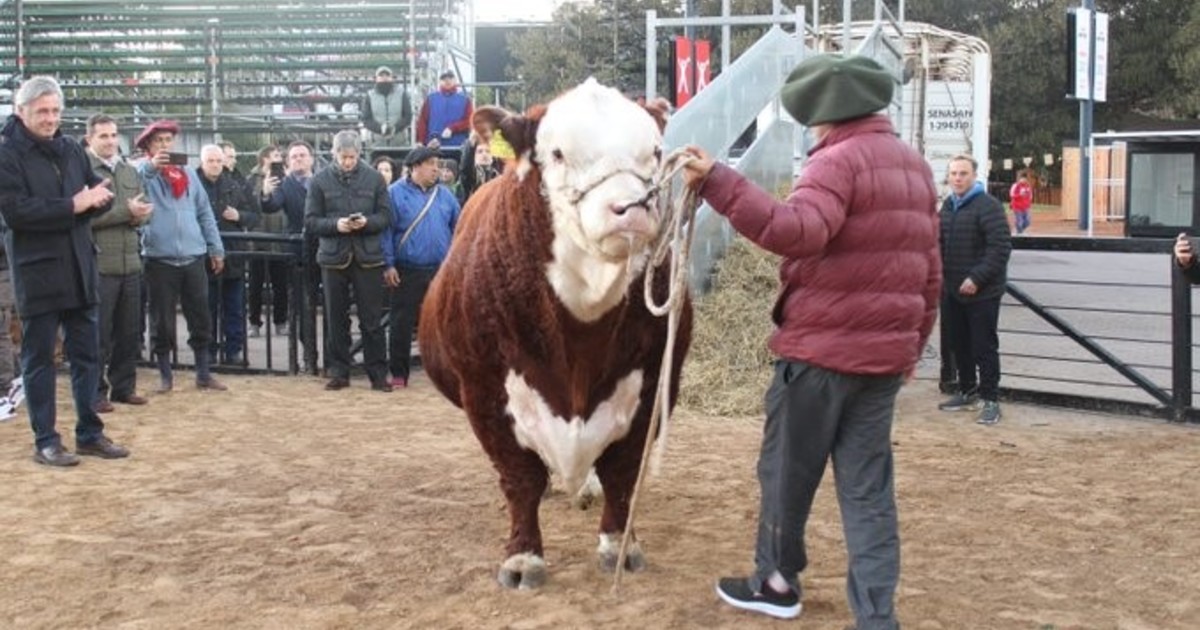 Este mañana pisó la pista central de la exposición un toro Hereford.Estuvo presente en el acto inaugural el nuevo secretario de Agricultura, Sergio Iraeta.