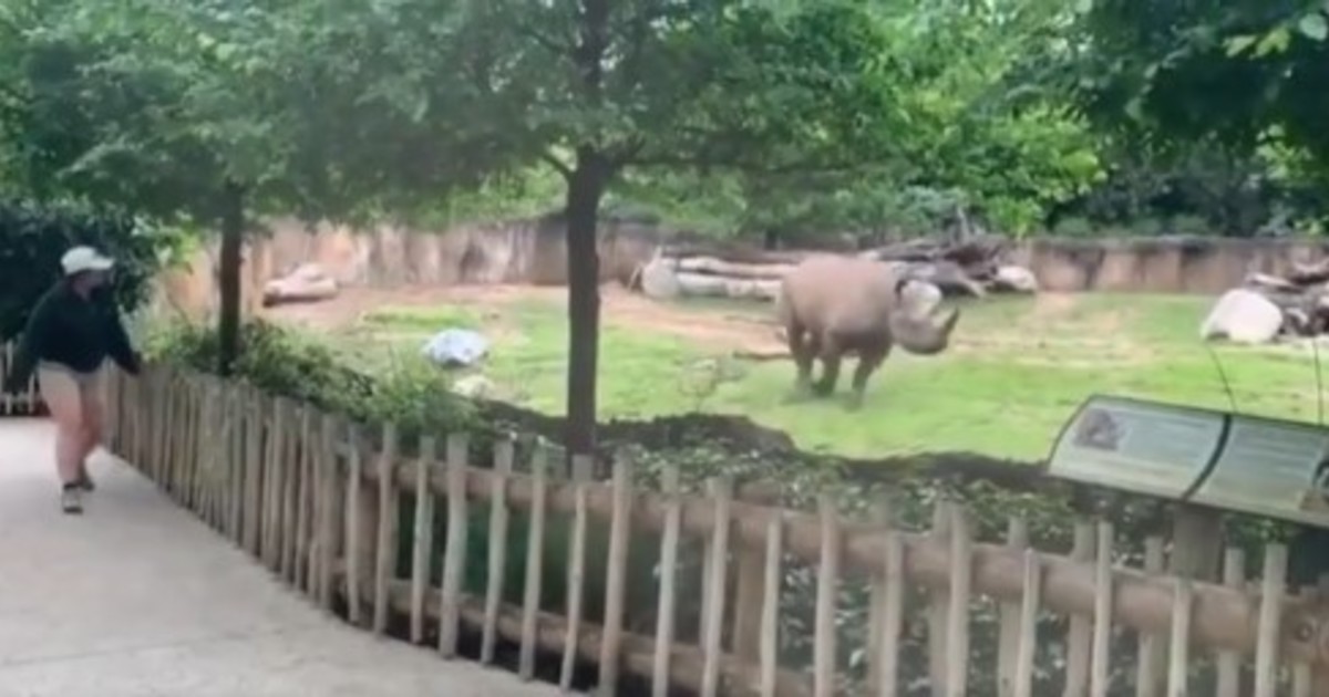 El rinoceronte mira atentamente la llegada de la cuidadora y, luego de unos segundos, la reconoce.Su reacción es igual a la de un perro al recibir a su dueño. Mirá el video.