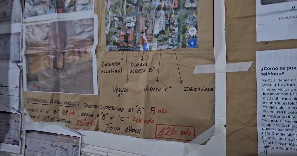 El mapa del túnel, croquis de la bóveda y otras anotaciones fueron encontradas en el galpón desde el que operaban los boqueteros. Creen que iban a ingresar a la bóveda de la sucursal Macro de San Isidro el próximo fin de semana.
