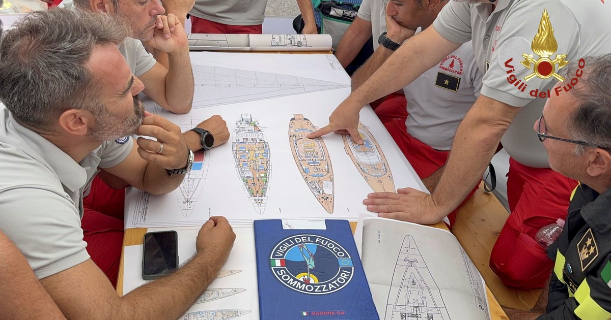 Los buzos luchan por llegar a los camarotes del velero de lujo británico que se hundió el lunes frente a Sicilia. El equipo dice que hay un “mundo de objetos” que bloquea el acceso a las habitaciones.Tienen sólo 10 minutos para buscar antes de tener que salir a la superficie. Seis personas siguen desaparecidas.