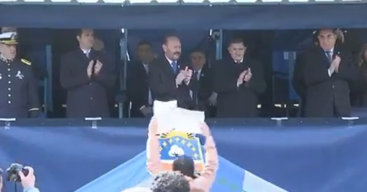 La mujer se paró delante del palco desde el cual el gobernador seguía el acto y mostró un cartel de protesta. Fue demorada junto a un un hombre que la acompañó en la protesta.La denuncia de la oposición y la versión policial.