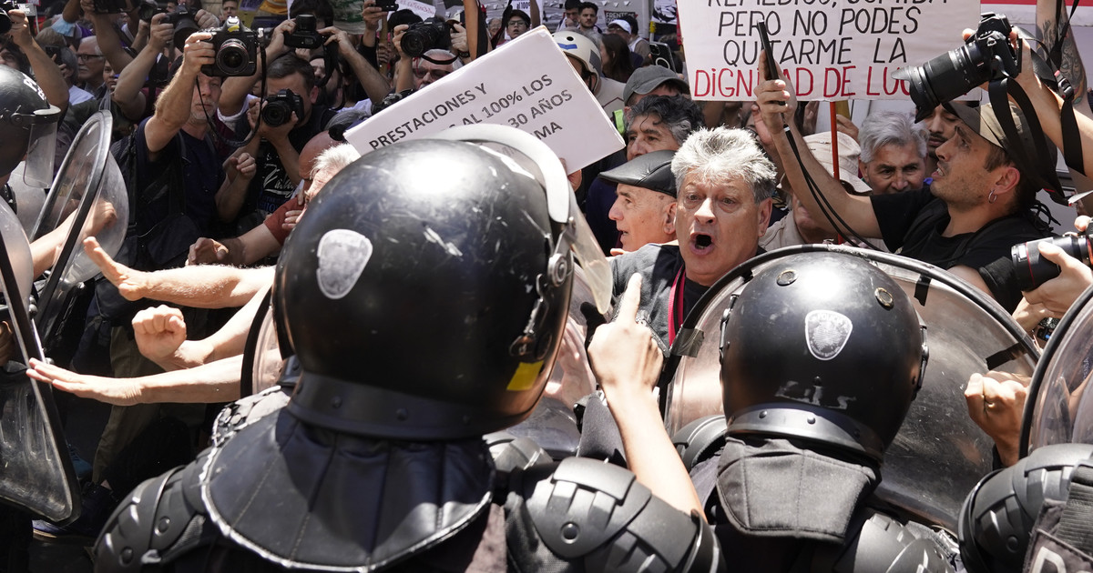 • Hubo cruces con los efectivos que armaron un cordón de seguridad.