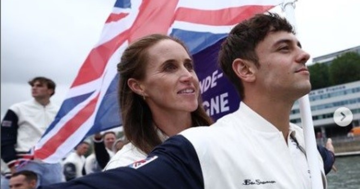 Se tomó una foto en la proa del barco que transportaba a la delegación de Gran Bretaña. En Tokio 2020 lo habían fotografiado tejiendo en la tribuna del natatorio.