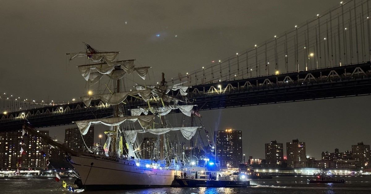 La embarcación se disponía a salir de la ciudad para iniciar una gira hacia Islandia cuando golpeó sus tres mástiles contra la estructura. Hay varios heridos.