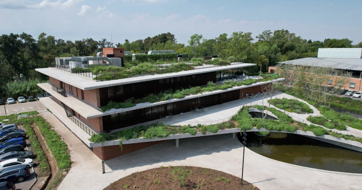 • Una cubierta-rampa con vegetación actúa como un segundo acceso al nuevo edificio del campus.