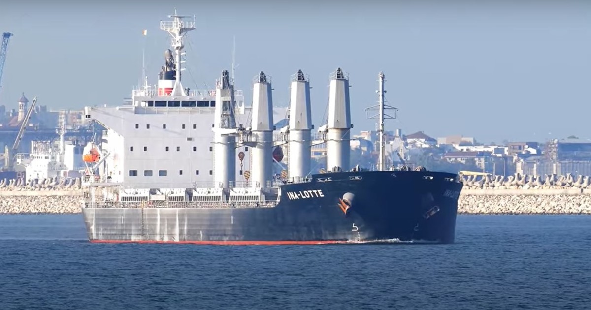 El barco cerealero INA-LOTTE, con bandera de Liberia, llegó este martes a la rada de San Lorenzo, en la provincia de Santa Fe.